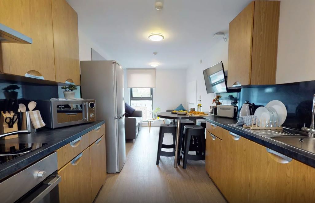 Las áreas compartidas continúan afuera, con un patio central con ping pong, mesas de picnic y bonitas plantas. Al lado, está la sala de música en vivo O2 Academy. Y en Park Street, encontrarás tiendas, comida, bebida y diversión nocturna.
