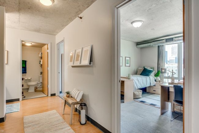 The Flats ofrece habitaciones individuales y dobles en cada apartamento, con baño compartido, cocina y sala de estar. Ideal para estudiantes que desean descubrir la cultura local de Chicago y explorar el área con otros estudiantes internacionales. La residencia cuenta con administración y mantenimiento en el lugar y organiza eventos comunitarios. Las instalaciones incluyen una cocina totalmente equipada con horno eléctrico / estufa, microondas y refrigerador, un sistema de calefacción y refrigeración de bajo consumo y puertas de dormitorio con cerradura individual. El edificio se beneficia de un gimnasio, sala de estar, instalaciones de lavandería, centro de computadoras, máquinas expendedoras y WiFi.