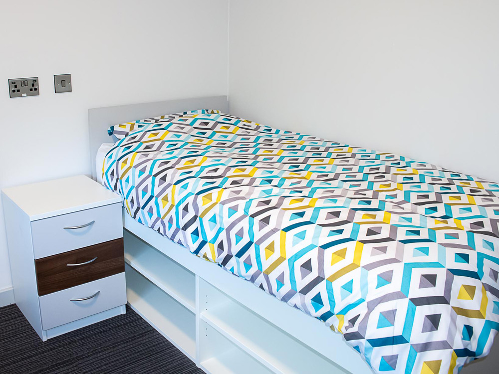 Todas las habitaciones son individuales con cuarto de baño privado y algunas están diseñadas especialmente para estudiantes discapacitados. En el precio de la matrícula se incluye el acceso a las instalaciones del gimnasio en el campus. Hay cocina común que se comparte entre seis estudiantes.