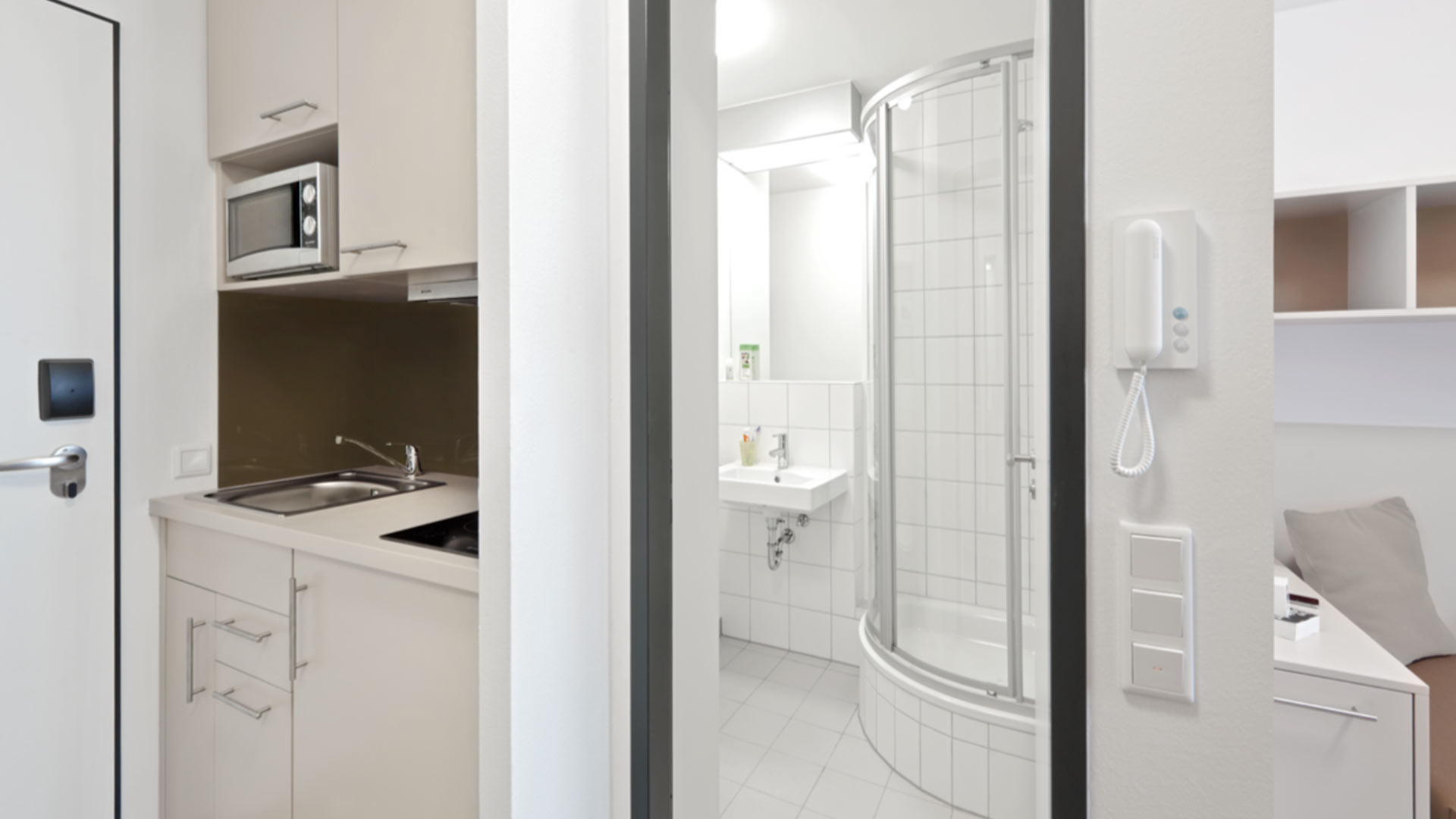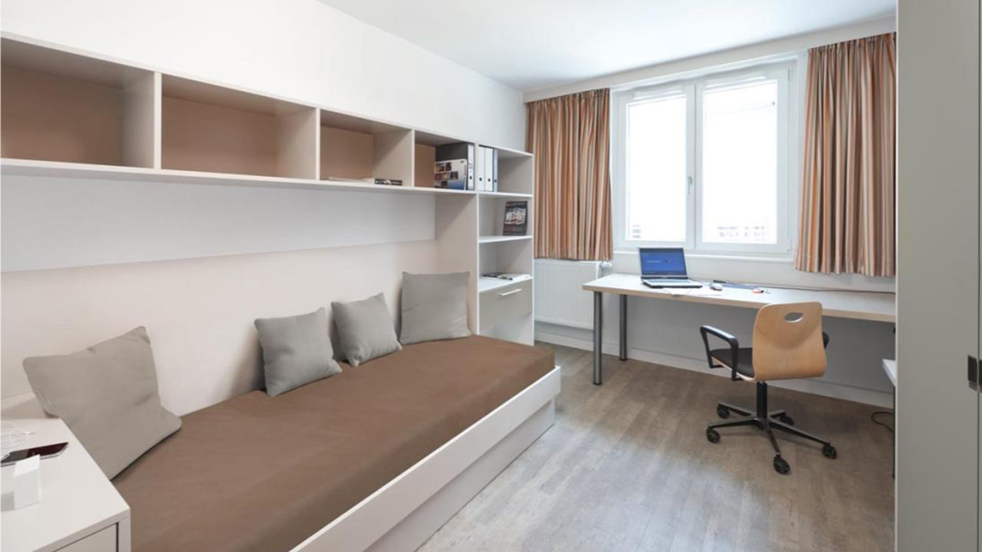 La residencia de estudiantes se sitúa en el moderno distrito Europa. El centro comercial Skyline Plaza, con numerosos restaurantes y tiendas, está a poca distancia caminando. Las zonas comunes ofrecen la oportunidad de conocer a los otros residentes de Alemania y de todo el mundo. Puede llegar a la escuela en solo 15 minutos en tranvía.